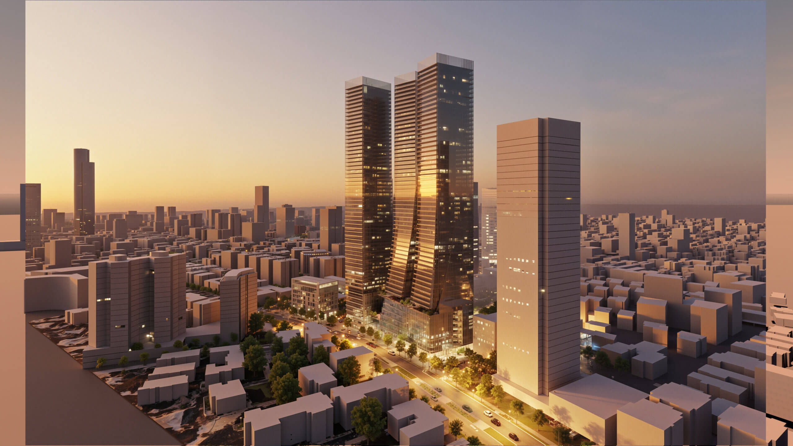 תהליך הצטופפות הערים מאלץ אדריכלים לייצר פתרונות דיור יעילים לניצול קרקע באופן מיטבי. דרך אחת, שבאה לידי ביטוי בפרוייקט הנ"ל, היא עיצוב בניינים קומפקטים בשילוב של חללים רב-שימושיים.  פרוייקט "המרחב הציבורי התלת-מימדי" בתכנון המשרד, שנעשה בכפיפות לתכנית האב של שכונות הגפן ונחלת הגנים, מעניק הצעה יעילה להתמודדות עם הבעיה המורכבת. התוכנית מכילה בתוכה עירוב שימושים מקומת הקרקע ועד לקומה 7, כששאר השימושים המוצעים בקומות אלה הם מסחר, תעסוקה, לופטים, בית-ספר, גני ילדים מעונות יום ומשרדים הנקשרים זה לזה באמצעות גן מרחבי המכיל מערכות תנועה של מדרגות נעות ומעליות ציבוריות. תצורת הבנייה הזאת מכפילה ואף משלשת את ניצול הקרקע, שכן עירוב השימושים מנצל גם את מימד הגובה. מערכת המגדלים מאפשרת את הייתכנות הכלכלית לפינוי בינוי בשטח. מעבר לכך, הפרוייקט דוגל בבניה ירוקה ולכן גגותיו המתפקדים כשפ"פים (שטחים הפתוחים הפרטיים), יהיו ירוקים. החזון הארכיטקטוני הירוק של הפרוייקט הוא יצור מערכת אקולוגית זעירה סביב הבניין: גינות הגג ינביטו פרחים וימשכו דבורים שיאבקו את הסביבה הקיימת.